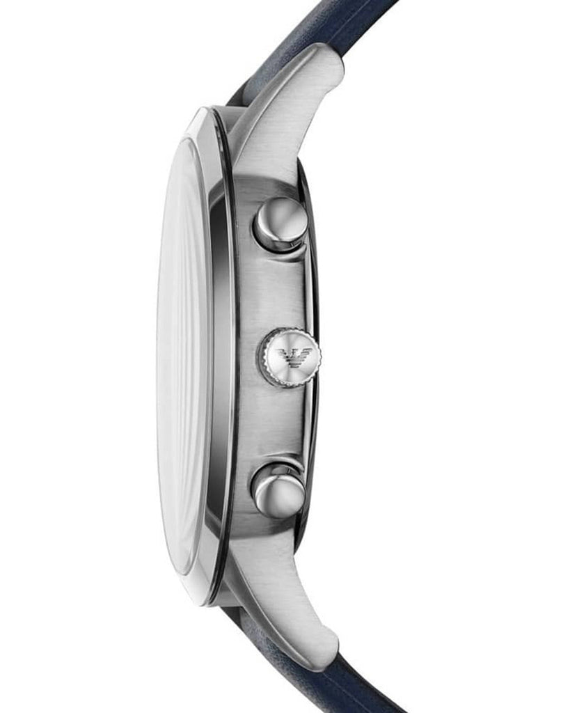 Emporio Armani Renato Chronograph Blue Dial Black Leather Strap Watch For Men - AR11216