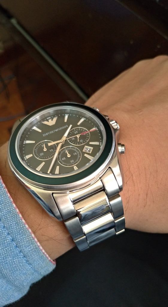 Emporio Armani Sportivo Chronograph Blue Dial Silver Steel Strap Watch For Men - AR6090
