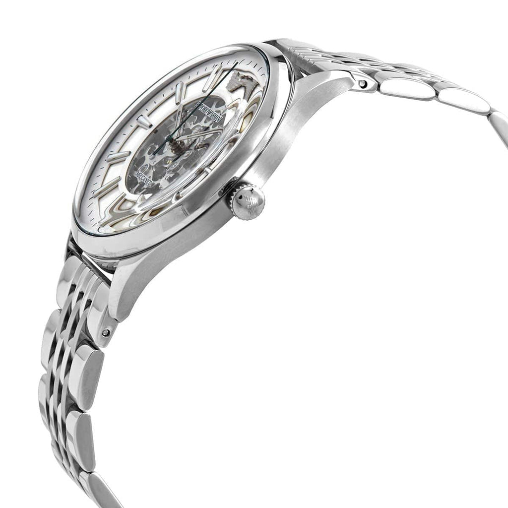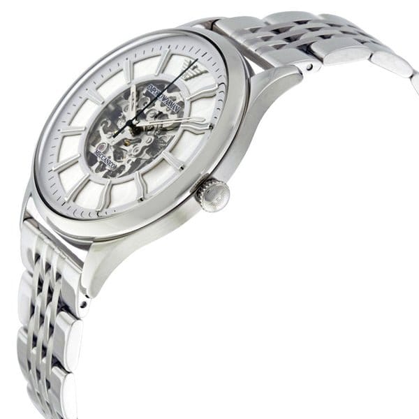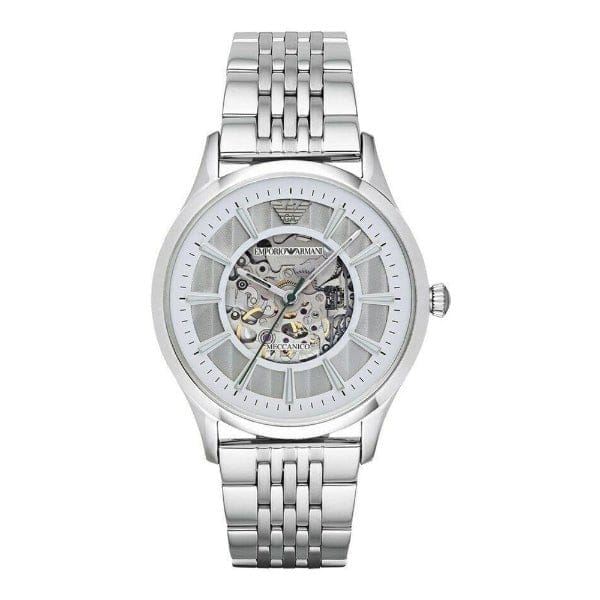 Emporio Armani Meccanico Skeleton Silver Dial Silver Steel Strap Watch For Men - AR1945