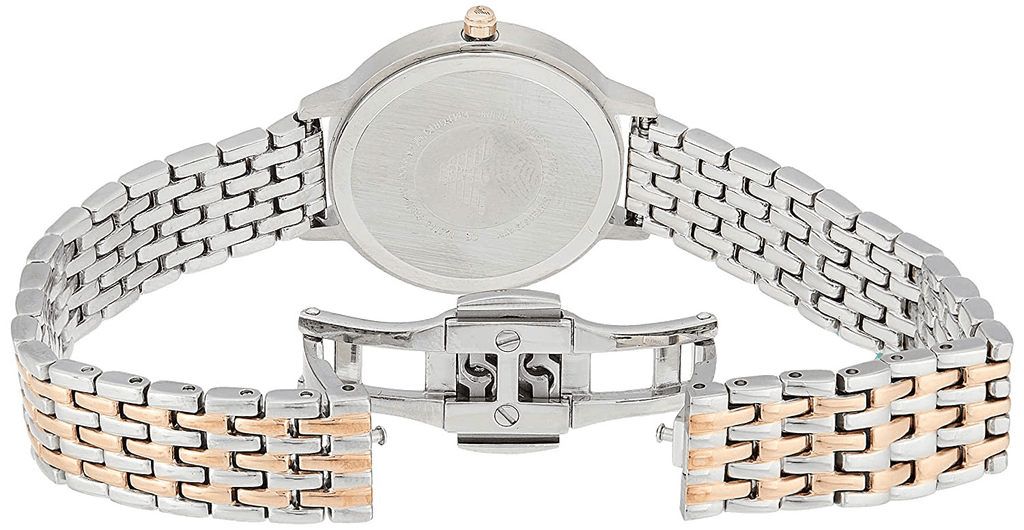 The Ladies Rose Gold & Silver Stainless Steel Emporio Armani Watch AR11094 is a fantastic ladies watch. This watch has a 32mm stainless steel case with an analogue display. The watch has a mother of pearl dial with a stainless steel strap and is powered by Quartz movement. The watch is water resistant up to 30 meters and comes with a presentation box.