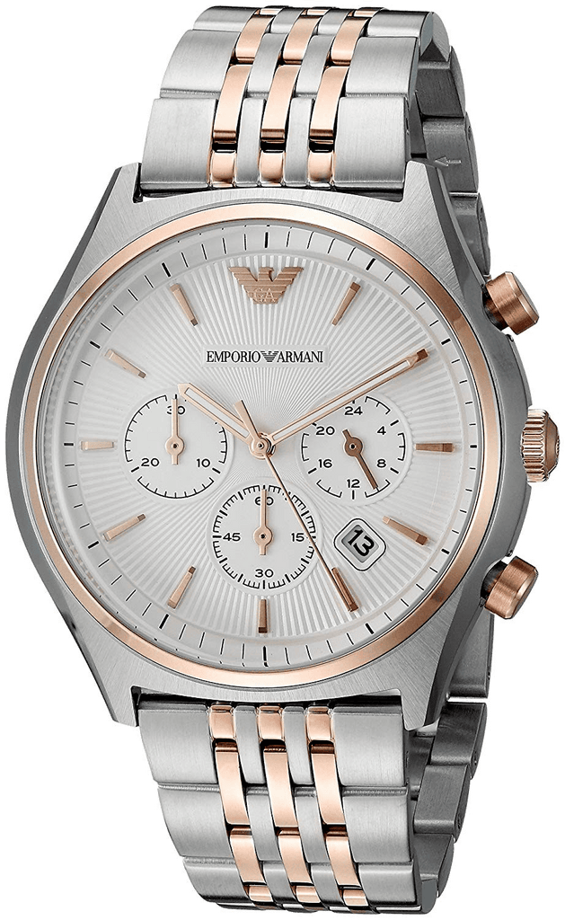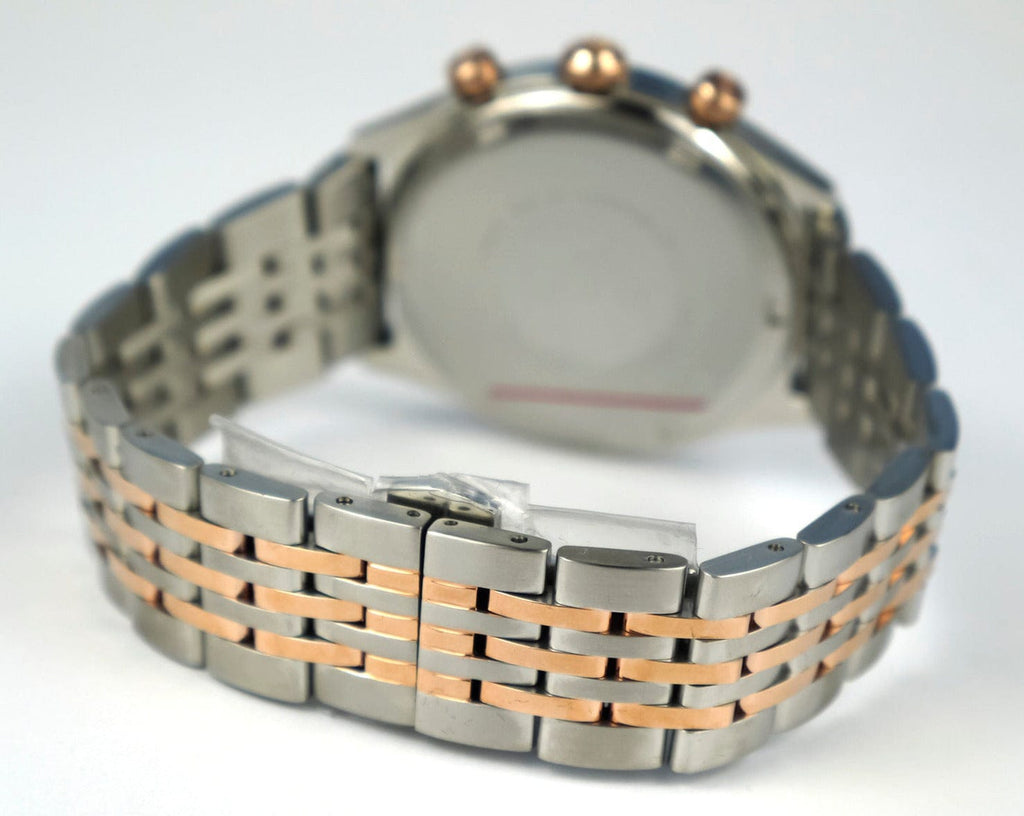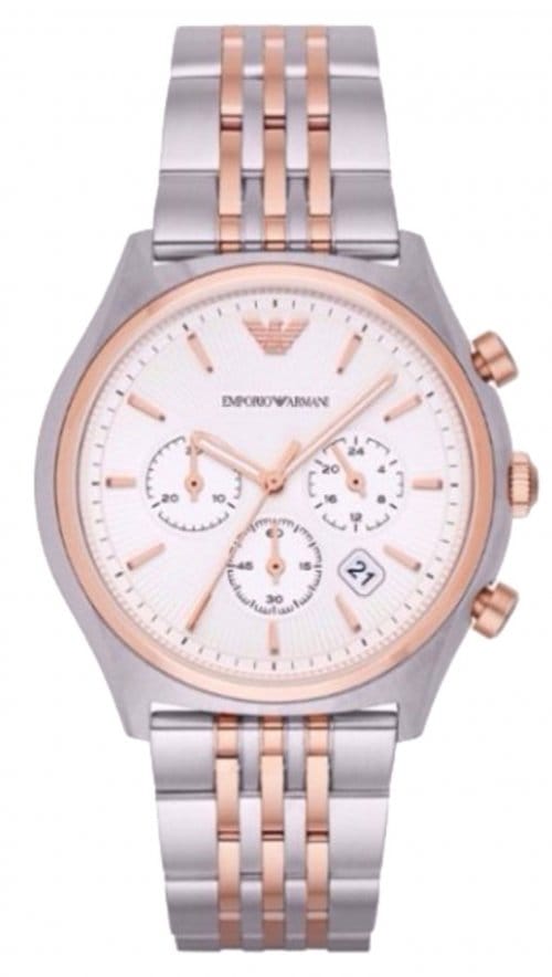 Emporio Armani Zeta Chronograph Quartz White Dial Two Tone Steel Strap Watch For Men - AR1998