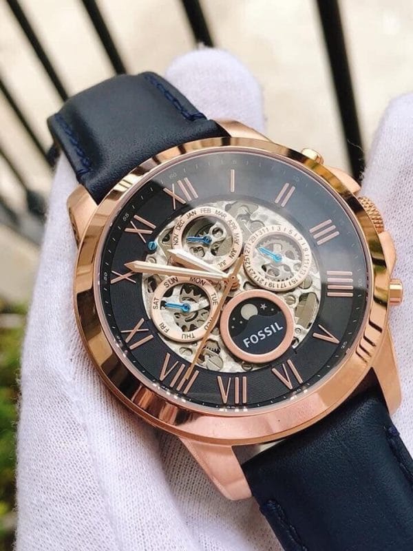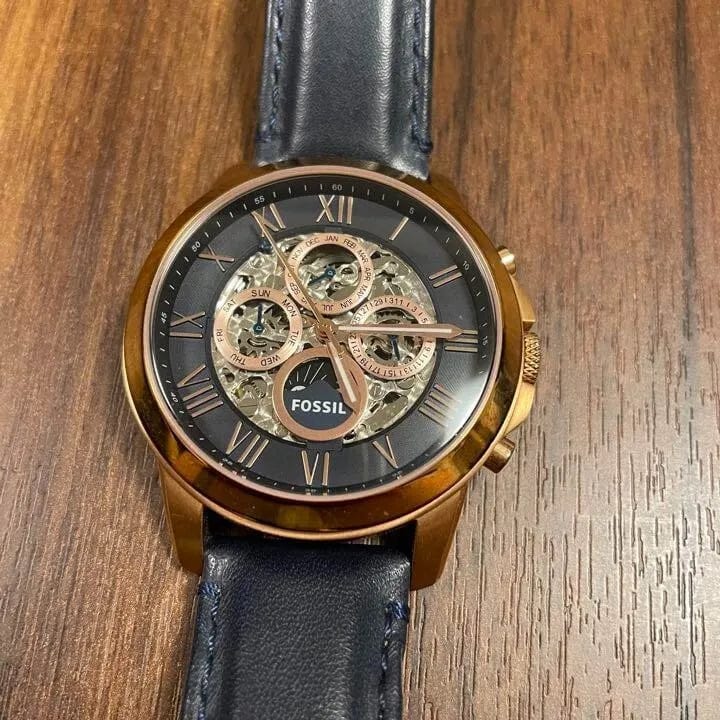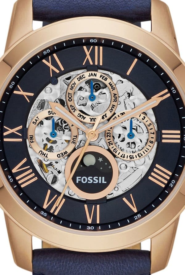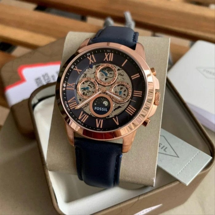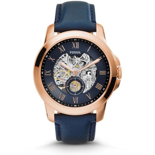 Fossil Grant Automatic Blue Dial Blue Leather Strap Watch for Men - ME3029