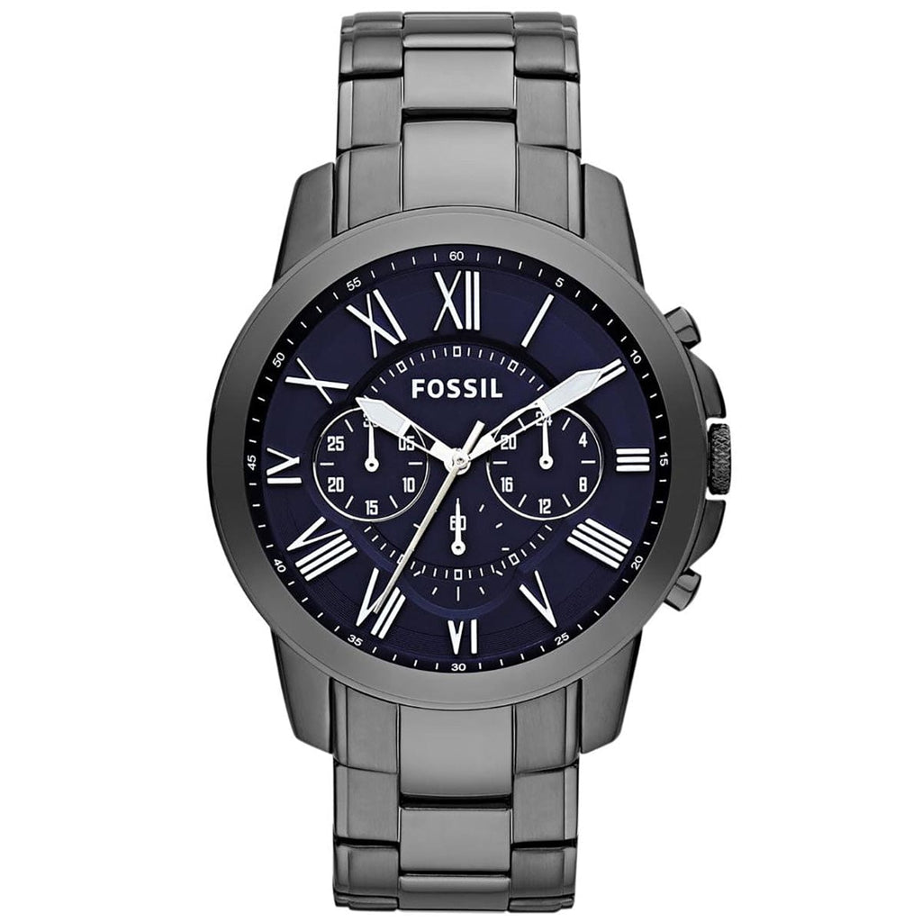 Fossil Grant Chronograph Blue Dial Grey Steel Strap Watch for Men - FS4831