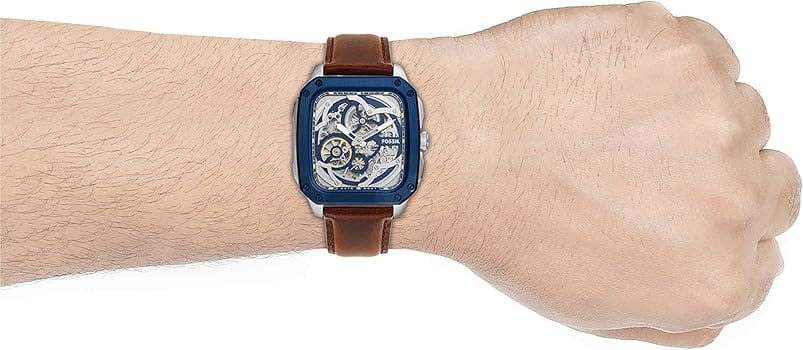 Fossil Inscription Automatic Skeleton Blue Dial Brown Leather Strap Watch for Men - BQ2571