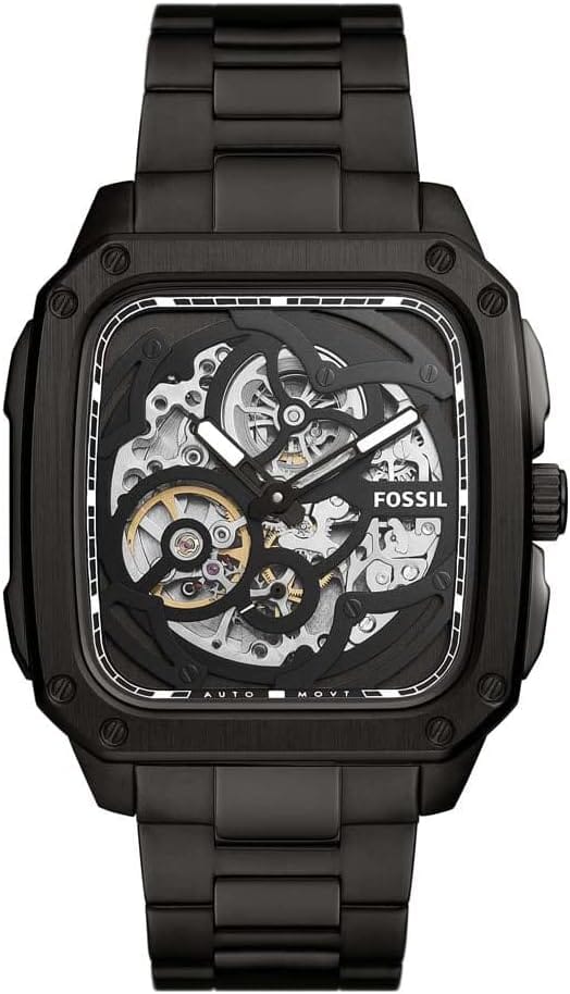 Fossil Inscription Automatic Skeleton Black Dial Black Steel Strap Watch for Men - BQ2574