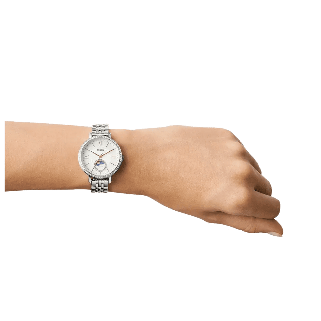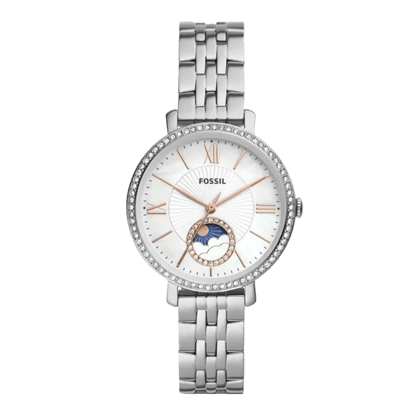 Fossil Jacqueline Multifunction Moonphase White Dial Silver Steel Strap Watch for Women - ES5164