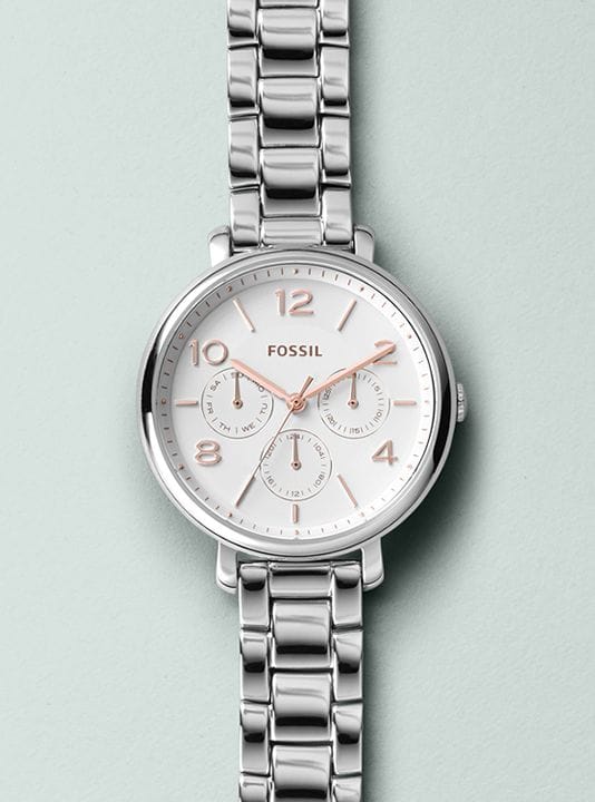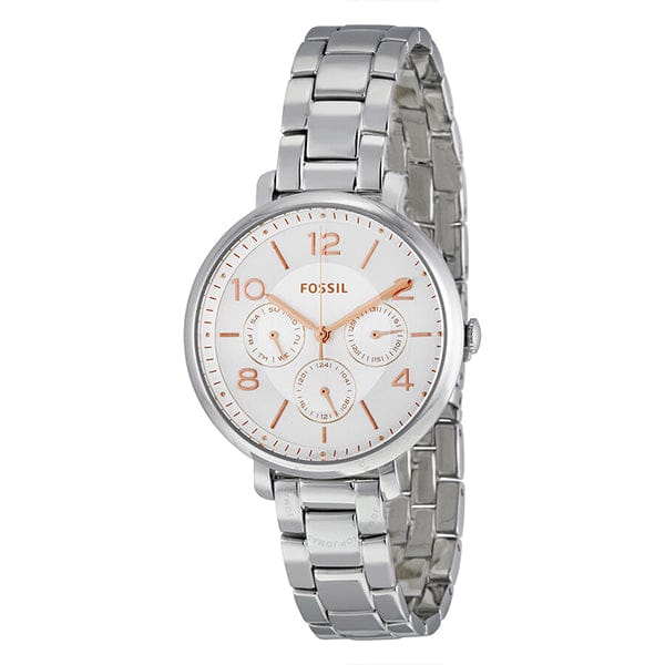 Fossil Jacqueline Multifunction White Dial Silver Steel Strap Watch for Women - ES3738