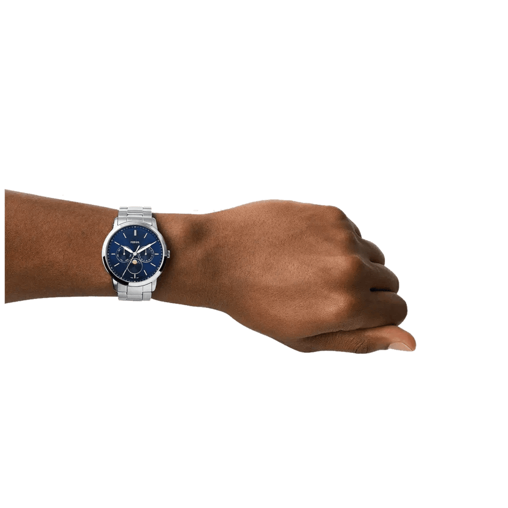 Fossil Neutra Minimalist Moonphase Blue Dial Silver Steel Strap Watch for Men - FS5907