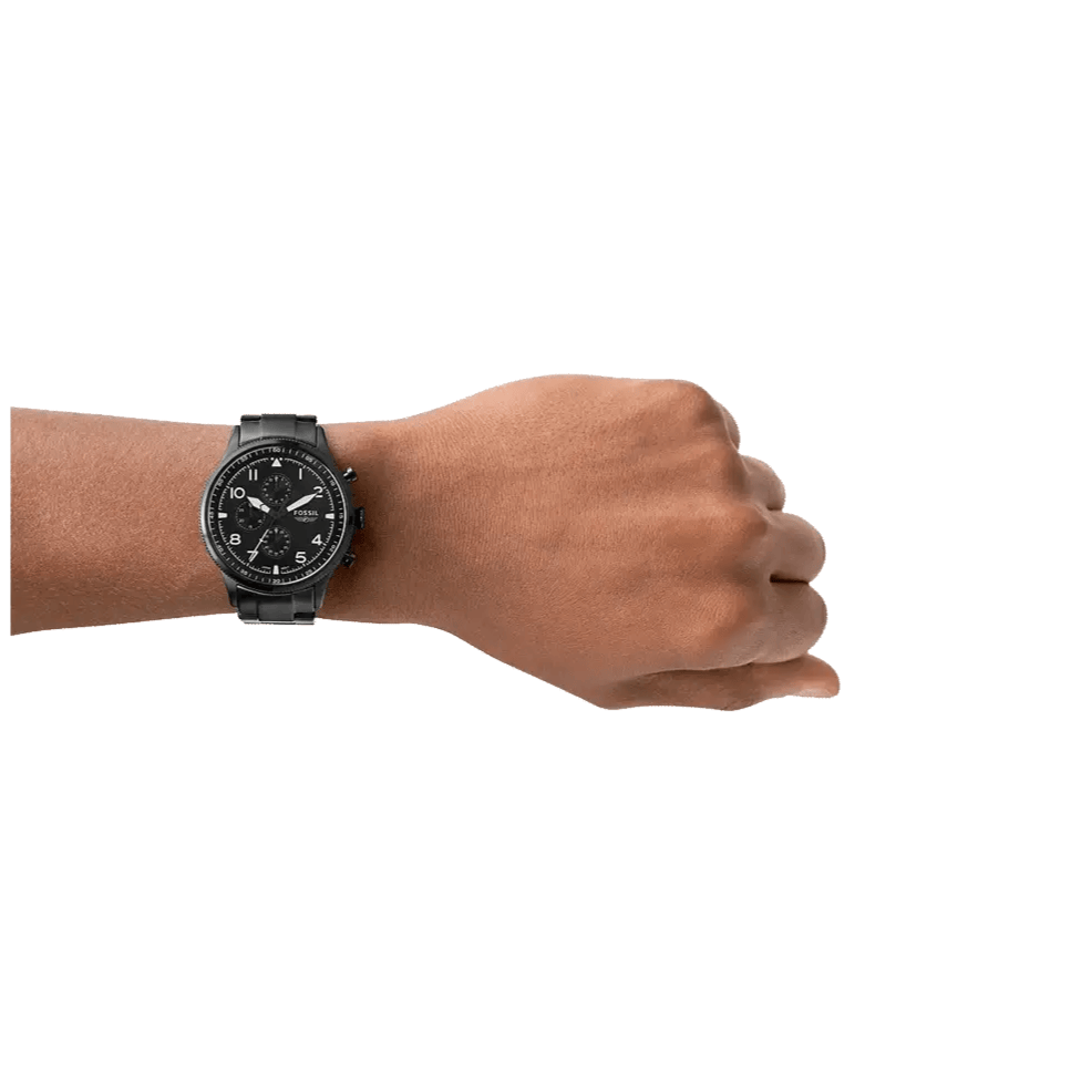 Fossil Pilot Chronograph Black Dial Black Steel Strap Watch for Men - FS5811