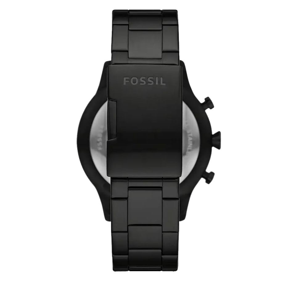 Fossil FS-5811 Chronograph Men Watch. The case is made out of black stainless steel with a black bezel, which stands for the high quality of the item, it has a black color dial. This model has got 50 meters of water resistance. it can be worn in scenarios where it is likely to be splashed but not immersed in water and will be fine in rain. The watch is shipped with an original box and a guarantee from the manufacturer.