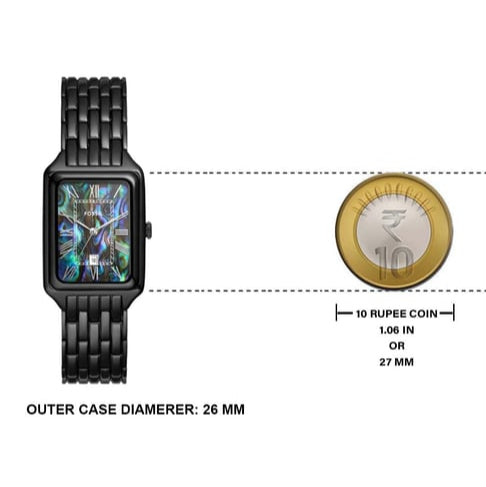 Introducing the Fossil Raquel Three Hand Date Black Dial Black Steel Strap Watch For Women - ES5340. This sleek and stylish watch features a black dial and black steel strap, perfect for any occasion. With the added convenience of a date function, it's the perfect accessory for the modern woman. Elevate your style and stay on track with this must-have timepiece.