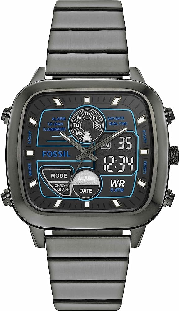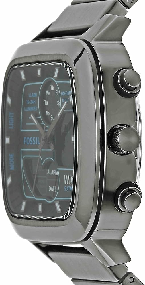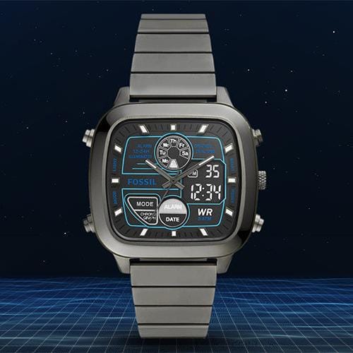 Fossil Retro Analog-Digital Black Dial Grey Steel Strap Watch for Men - FS5892