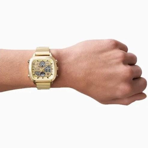 Fossil Retro Digital Gold Dial Gold Steel Strap Watch for Men - FS5843