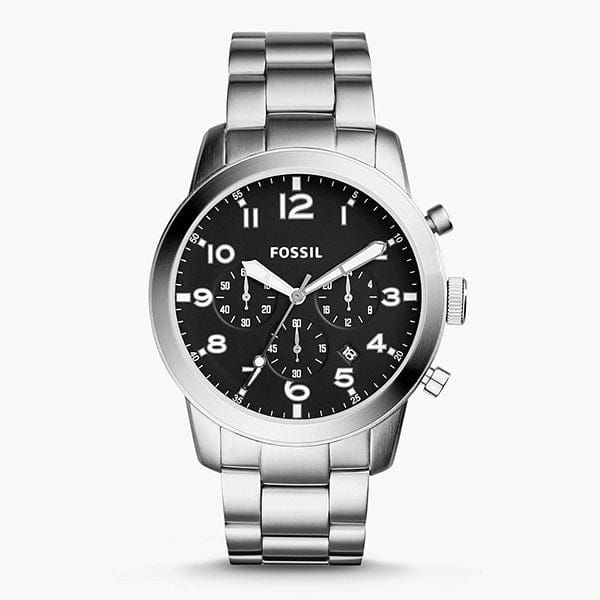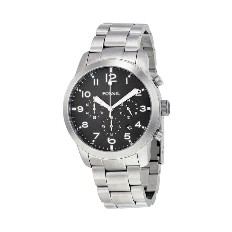 Fossil Pilot Chronograph Black Dial Silver Steel Strap Watch for Men - FS5141