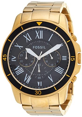 Fossil Inscription Automatic Black Dial Gold Steel Strap Watch for Men - FS5267