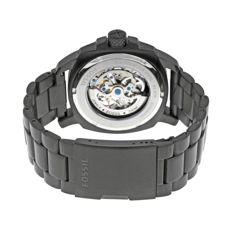 Fossil Modern Machine Automatic Silver Dial Black Steel Strap Watch for Men - ME3080