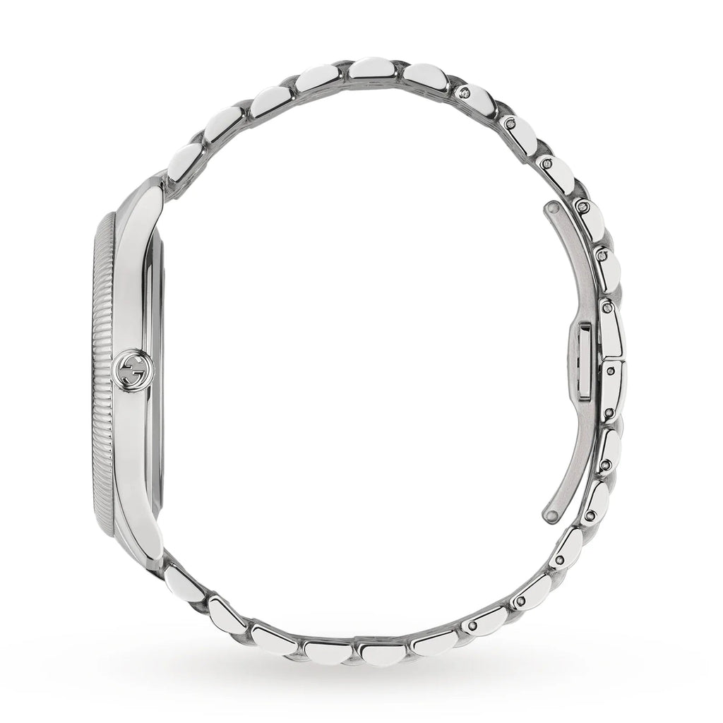 Gucci YA126353 is a functional and attractive Gents watch. Material of the case is Stainless Steel, which stands for a high quality of the item and the Black dial gives the watch that unique look. This model has got 50 metres water resistancy - it can be submerged in water for periods, so can be used for swimming and fishing. It is not recommended for high impact water sports. We ship it with an original box and a guarantee from the manufacturer.