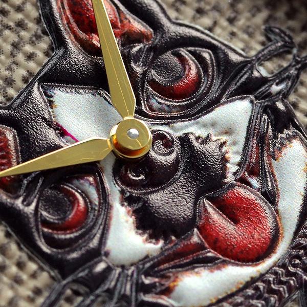 The Gucci, G-Timeless series features a stainless steel 38mm case, with a fixed bezel, a dog motif dial and a scratch resistant sapphire crystal. The leather band is fitted with a buckle clasp. This beautiful wristwatch, powered by Swiss quartz movement supporting: hour, minute functions. This watch has a water resistance of up to 165 feet/50 meters, suitable for short periods of recreational swimming, but not diving or snorkeling.