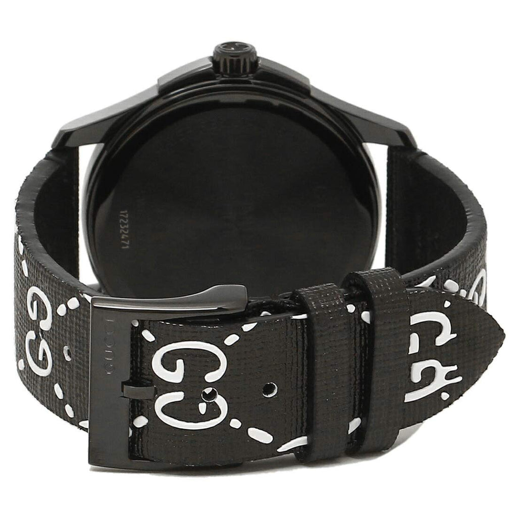 Gucci G Timeless Ghost Black Dial Black Leather Strap Watch For Men - YA1264018