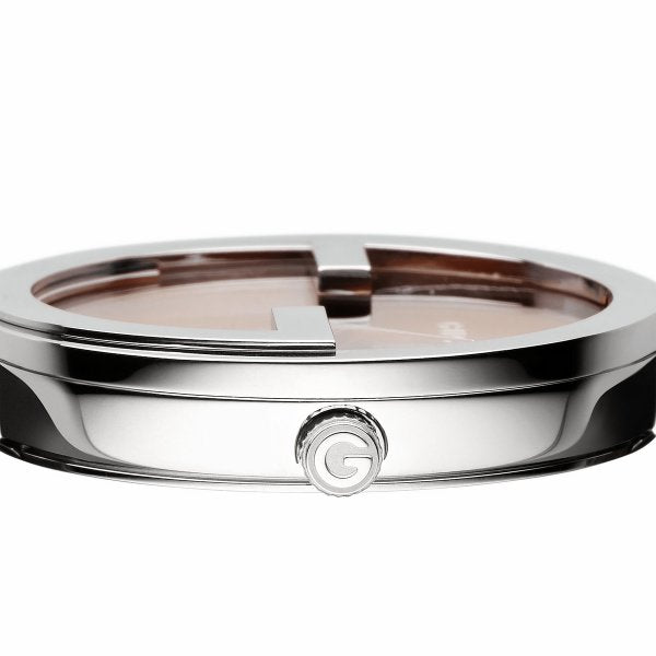 Round case shape. Band width: 20 mm. Tang clasp. Water resistant at 50 meters / 165 feet. Functions: hour, minute. Luxury watch style. Watch label: Swiss Made. Gucci Interlocking Dark Orange Dial Ladies Watch YA133316.