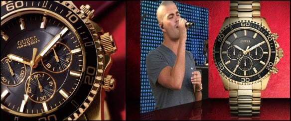 Guess Chaser Chronograph Black Dial Gold Steel Strap Watch for Men - W0170G2
