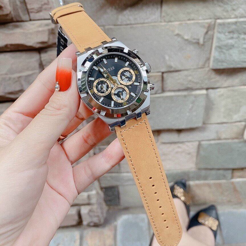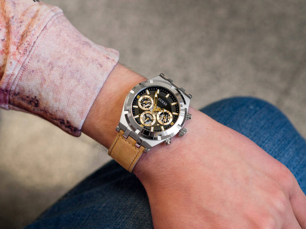 Guess Continental Multifunction Black Dial Brown Leather Strap Watch for Men - GW0262G1