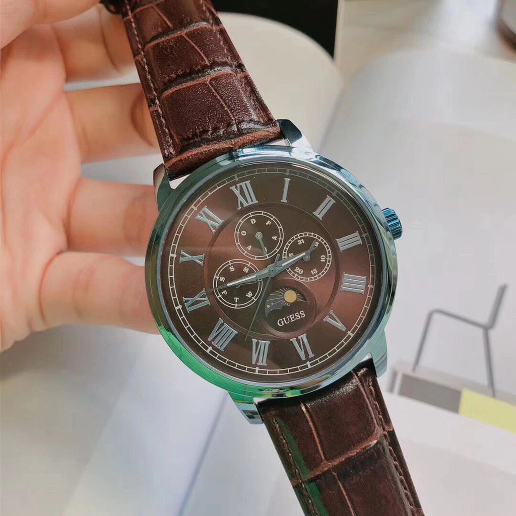 Complete your elegant outfit with this Guess Mens Dress watch for Men with a sturdy Genuine Leather band that fits perfectly on your wrist and comfortable to wear all day long and the watch has a stylish and modern design suitable for all of your occasions