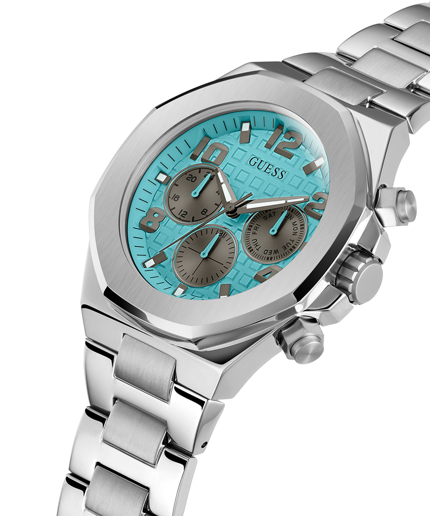 The Guess Empire GW0489G3 watch is a fashion model, the design of which fits into contemporary fashion trends for both men and women. The bracelet and the envelope are manufactured from silver stainless steel. In addition, the design presents a sporty elegance, highlighted by an octagonal bezel, blue dial and equipped with Day Date sub dial and 24-hour time.