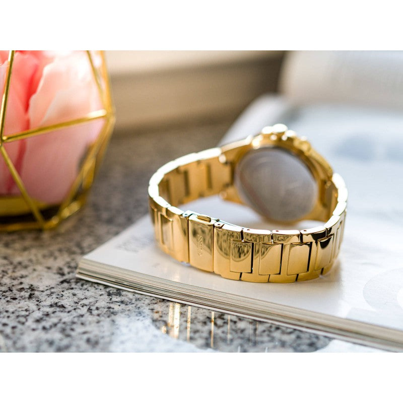 Guess Frontier Diamonds Gold Dial Gold Steel Strap Watch For Women - W1156L2