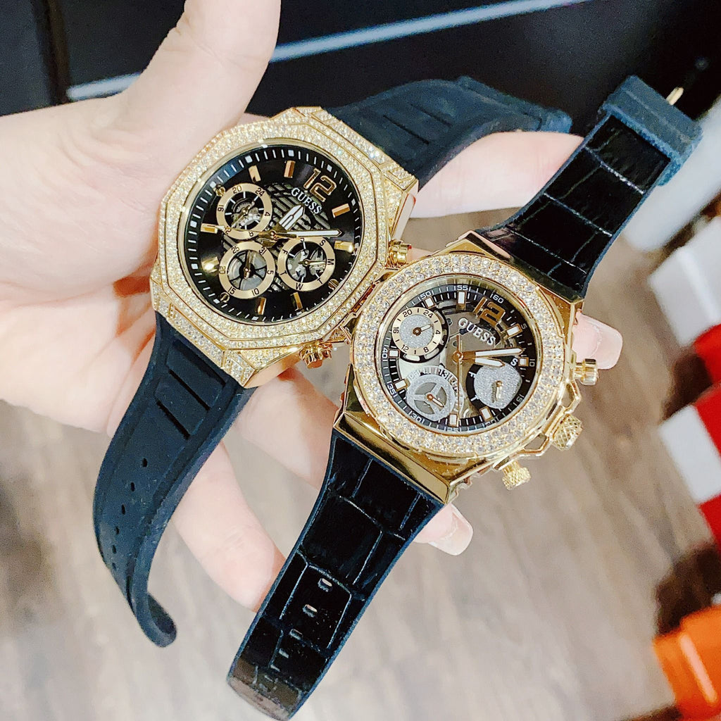 Guess Fusion GW0553L4 women's watch will add shine of any styling. In a solid, golden envelope made of stainless steel, which is decorated with crystals, a black shield was placed. The dial is equipped with dates of the days of the month, week and daily time, and then secured with a mineral slide. Water resistance in class 5 ATM protects the quartz mechanism in the event of slight splash. The whole is complemented by a black leather strap.