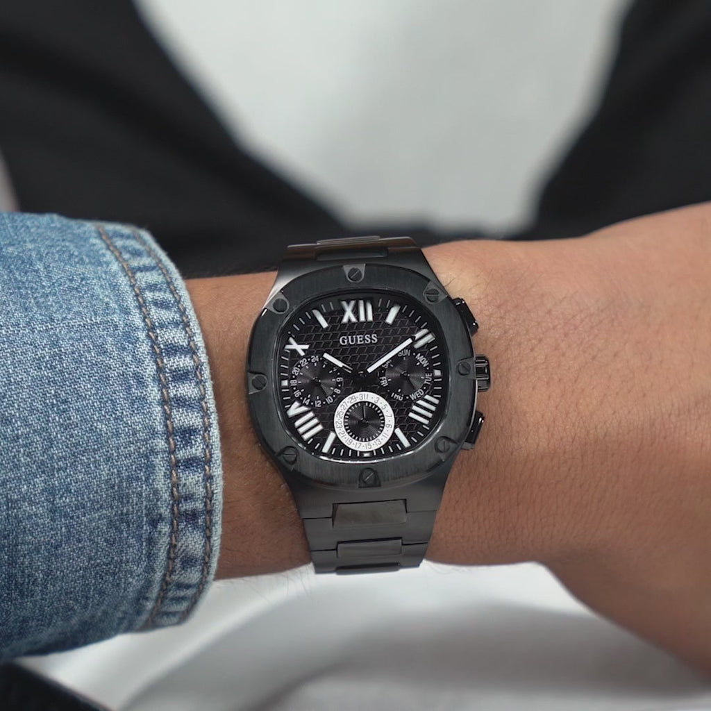 Guess Headliner Multifunction Black Dial Black Steel Strap Watch For Men - GW0572G3