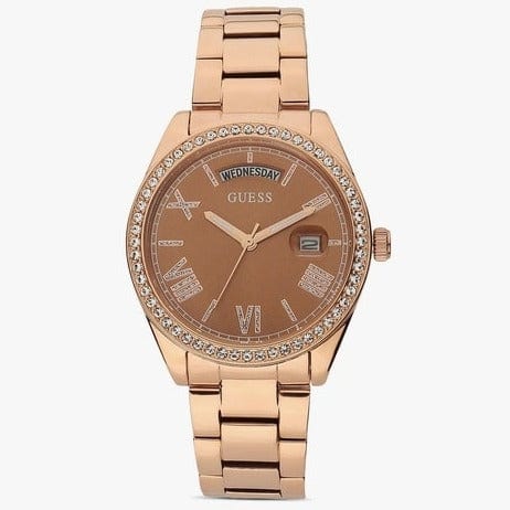 Guess Luna Diamonds Rose Gold Dial Rose Gold Steel Strap Watch for Women - GW0307L3