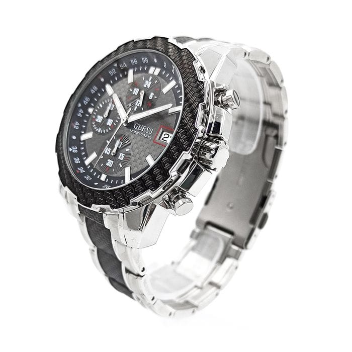 Guess Octane Chronograph Black Dial Two Tone Steel Strap Watch for Men - W1046G1