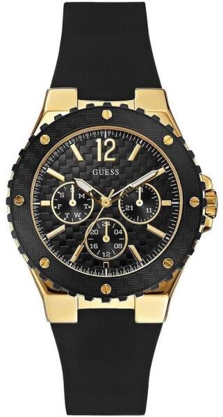 Guess overdrive W0149L4 is a women's watch that will give elegance to bold fashionable stylizations. The model was made of stainless steel in golden color and black rubber. His biggest advantage is the dark shield with the structure of a snake skin with a day date and 24-hour time.