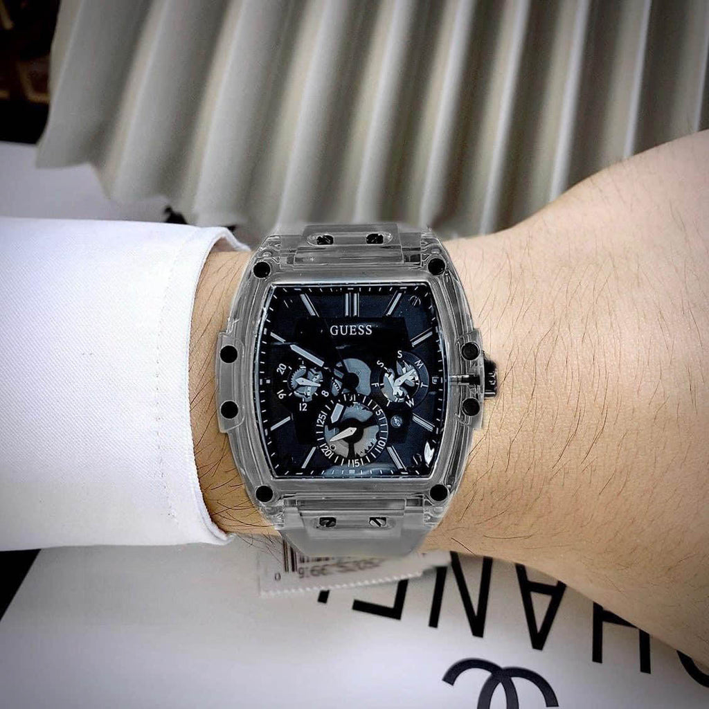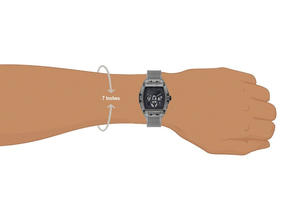 Elevate your style with the Guess Phoenix Multifunction Black Dial Grey Silicone Strap Watch! This sleek timepiece is perfect for any modern man, featuring a multifunction black dial and comfortable grey silicone strap. Make a statement with this stylish and functional watch that will elevate any outfit!