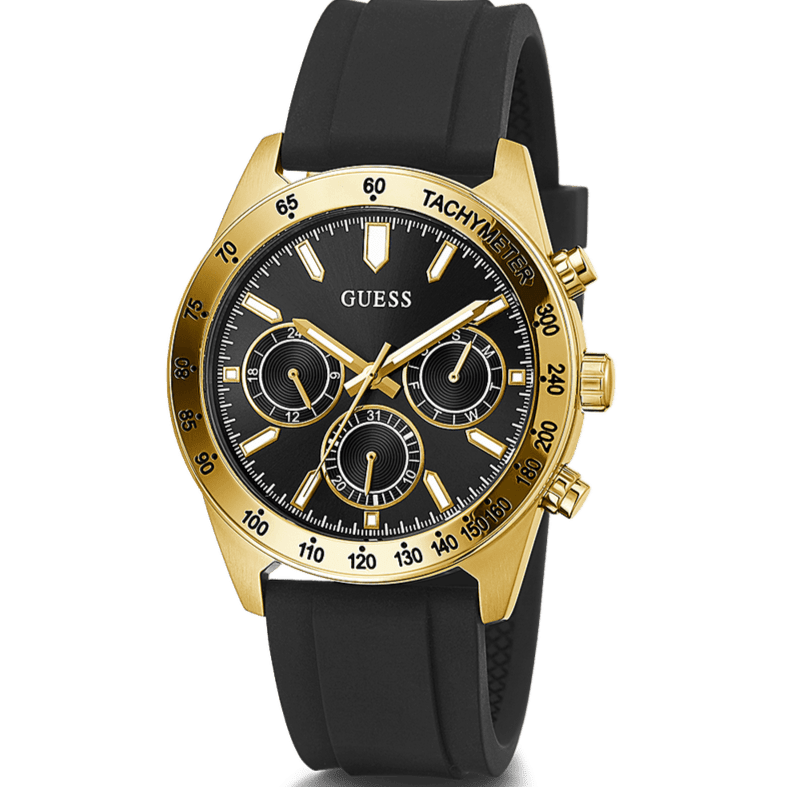 The Guess Sport Multifunctional Black Dial Black Rubber Strap Watch for Men - GW0332G2 is a stylish and versatile timepiece. The black dial and rubber strap give it a sleek appearance, perfect for any occasion. With multiple dials, it offers both functionality and style. Trust in the precision of this watch for all your timekeeping needs.