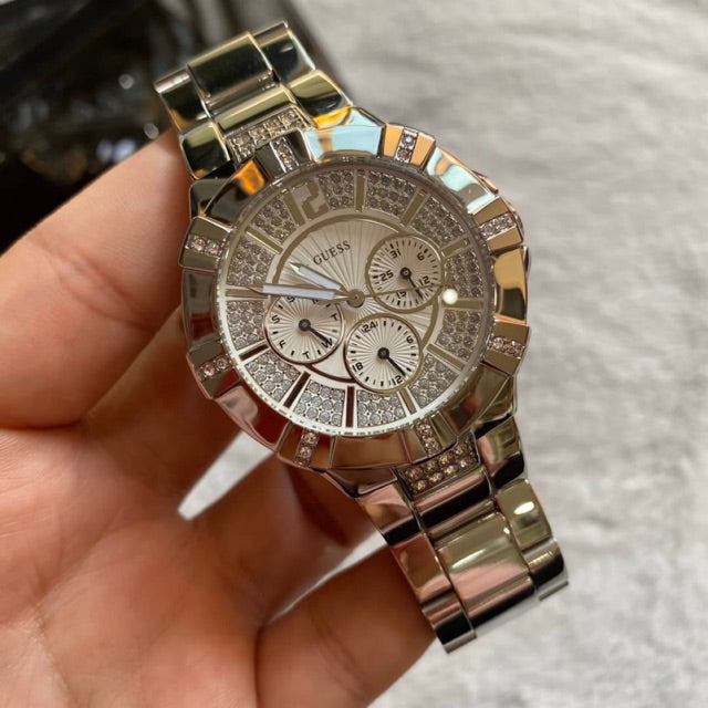 Guess Vista Diamonds Silver Dial Silver Steel Strap Watch for Women - W12080L1