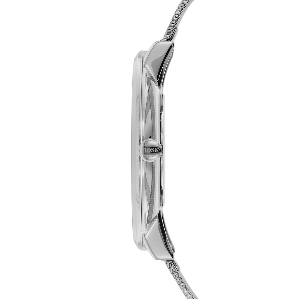 This BOSS watch features straight and minimal new hands in line with the case shape. Both a watch and a piece of jewellery, this family will seduce those looking for refinement and style. Stainless steel case and bracelet, blue dial with mineral crystal. Swiss quartz movement, sliding buckle clasp. Case size 40mm. Water resistance upto 30 meters.
