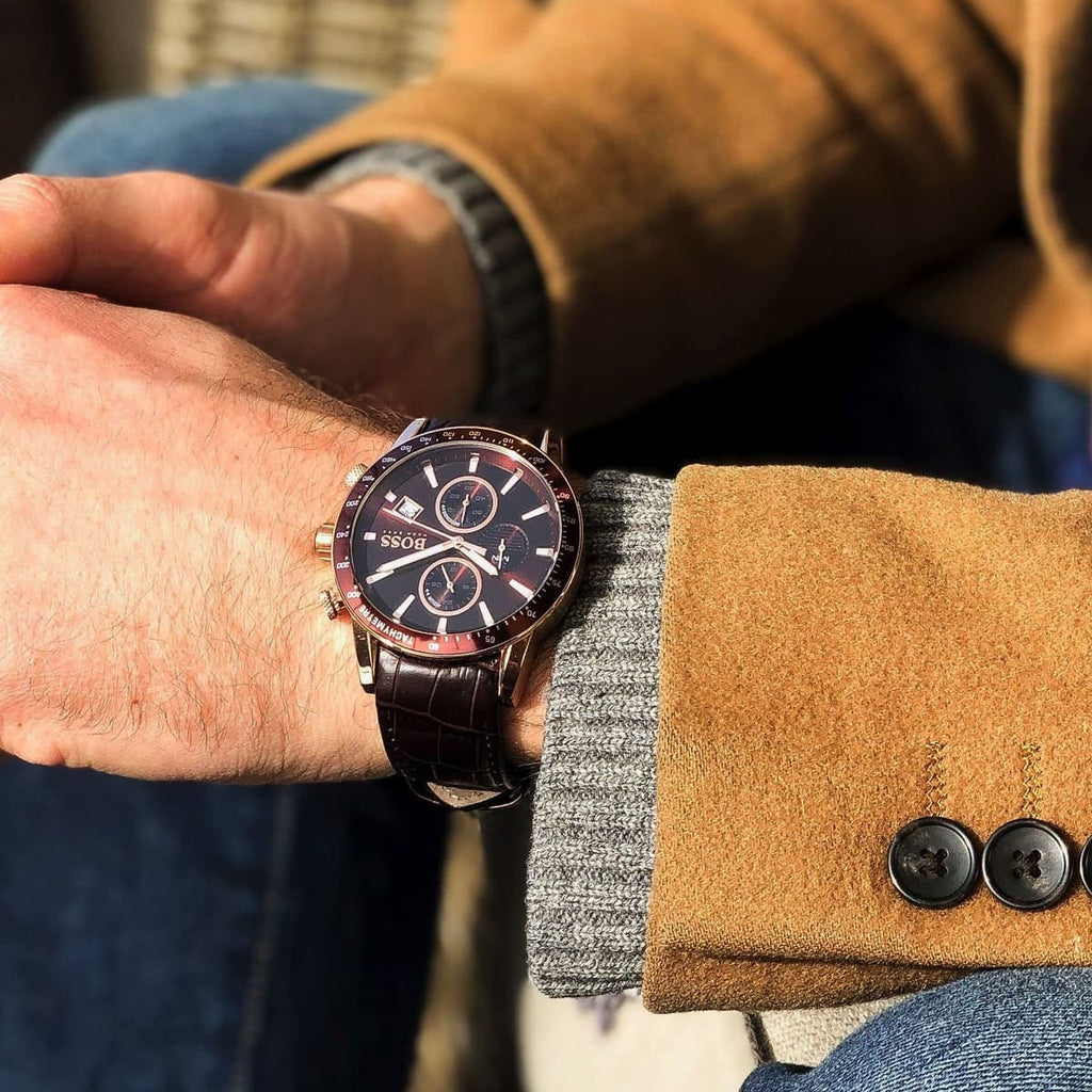Gold-plated details and a tachymeter function offer luxurious style for the BOSS sportsman. A croc-embossed leather strap offers supple comfort.