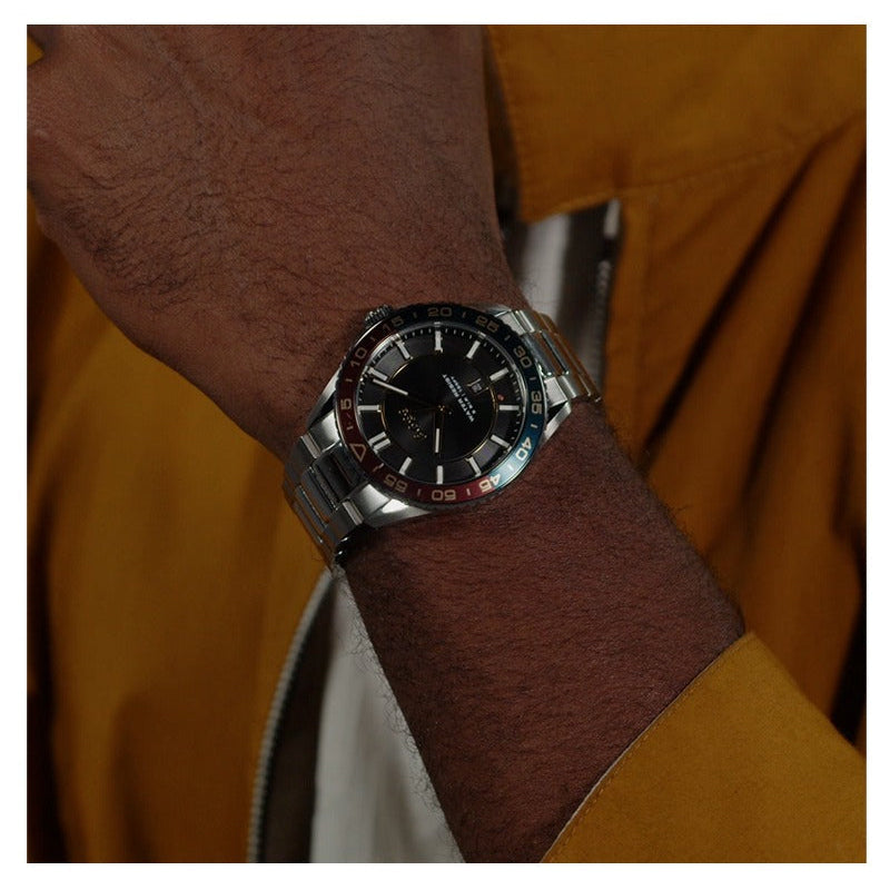 Hugo Boss Runner 3H Black Dial Silver Steel Strap Watch for Men - 1514210