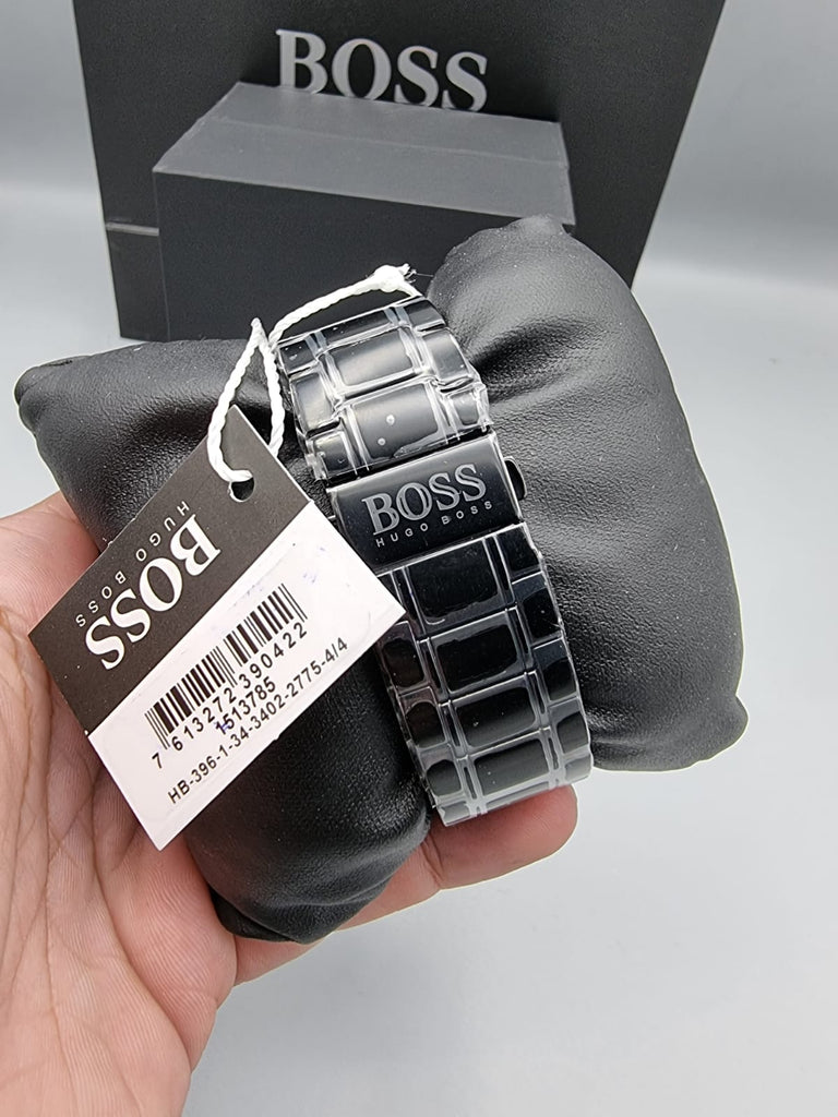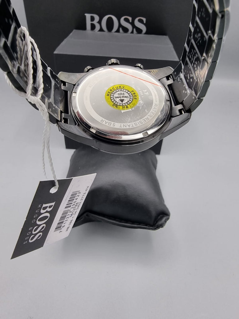 Hugo Boss Skymaster Chronograph Black Dial Black Steel Strap Watch for Men - 1513785