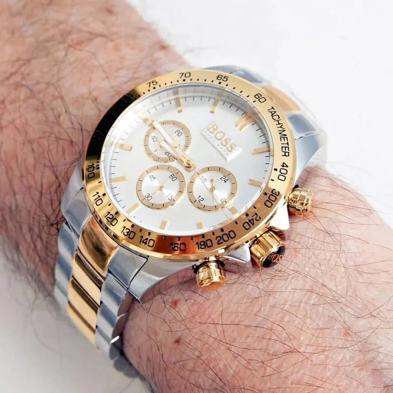 Hugo Boss Ikon Chronograph Silver Dial Two Tone Steel Strap Watch for Men - 1512960