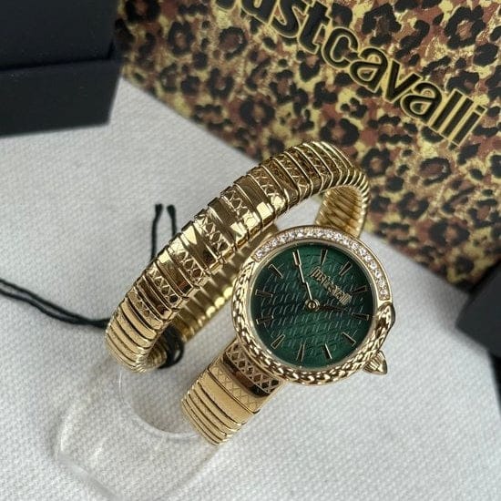 Elevate your style with the Just Cavalli Enchanting watch, designed for women who dare to stand out. Featuring a striking green dial inspired by exotic snake patterns and a luxurious gold steel strap, this timepiece blends boldness with elegance. Perfect for day-to-night wear, it adds a unique, fashionable edge to any outfit while ensuring reliable timekeeping. Make a statement with this stunning blend of vibrant design and sophisticated craftsmanship.