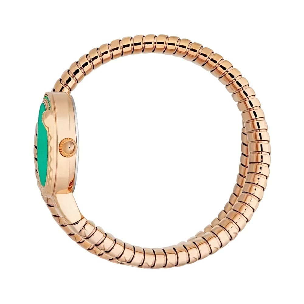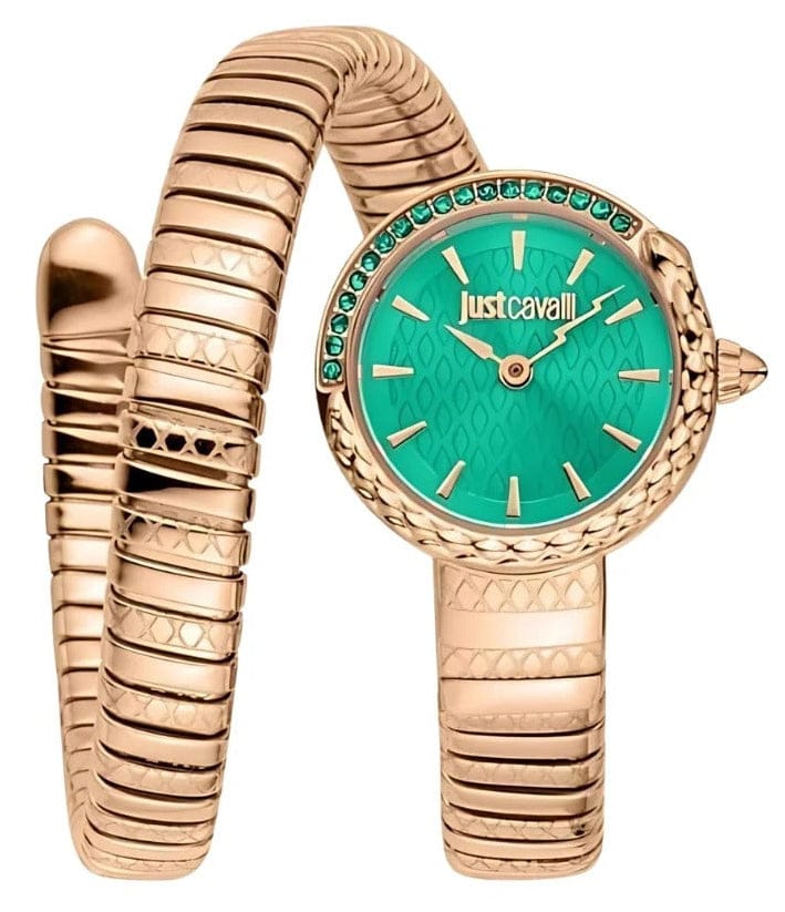 Elevate your style with the Just Cavalli Enchanting watch, featuring a striking green dial and rose gold steel strap. Designed for women who appreciate bold elegance, this timepiece combines luxury and durability effortlessly. Its unique snake-inspired design adds a captivating edge, making it perfect for both everyday wear and special occasions. Make a confident statement with this exquisite blend of fashion and function.
