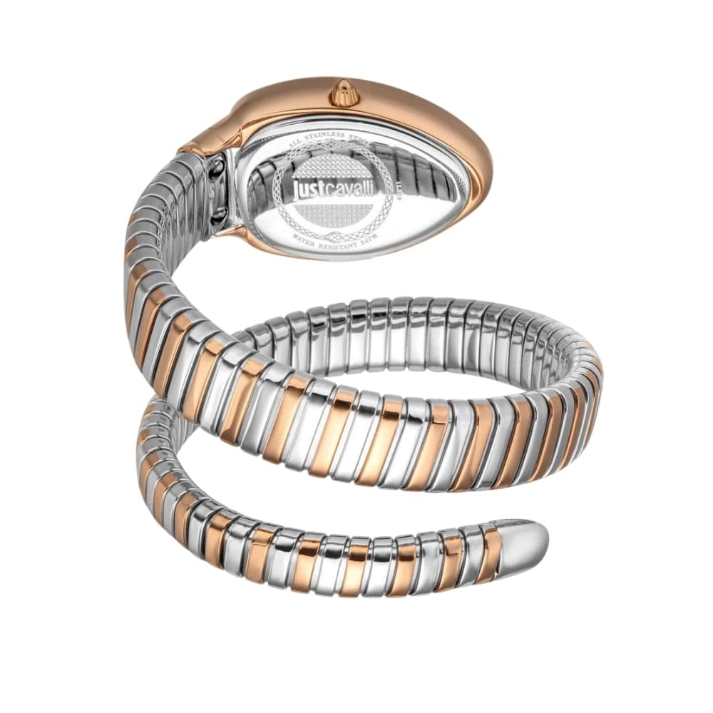 Make a bold statement with the Just Cavalli Signature Snake Blue Dial Ladies Watch. Featuring a striking blue dial and the iconic snake motif, this timepiece blends daring design with elegant craftsmanship. Perfect for those who want to stand out, it adds a fearless edge to any outfit while keeping precise time. Embrace your adventurous spirit with this unforgettable accessory.