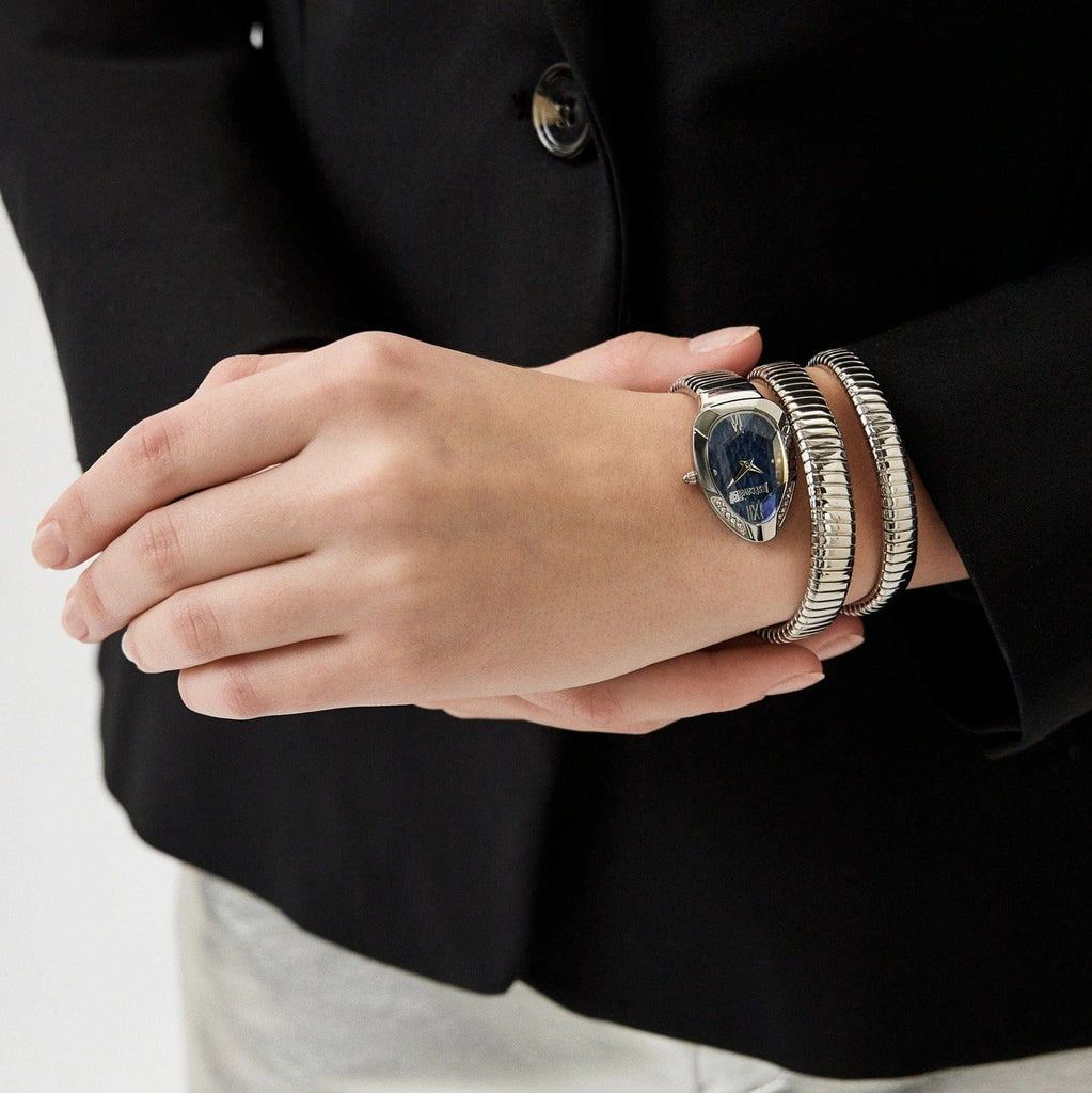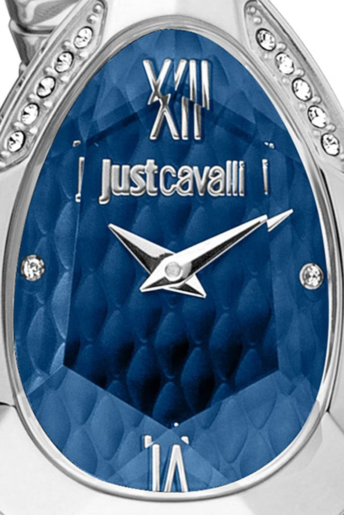 Just Cavalli Serpente Metallica Blue Dial Silver Steel Strap Watch for Women - JC1L224M0025