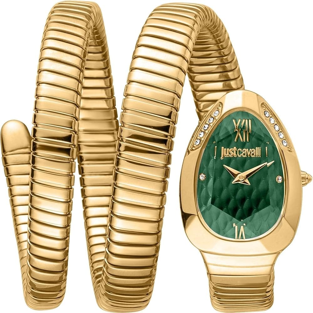 Just Cavalli Serpente Metallica Green Dial Gold Steel Strap Watch for Women - JC1L224M0045