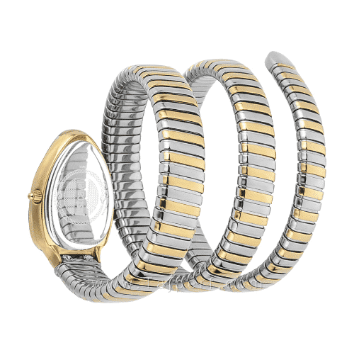 • Fixed stainless steel bezel with snake details wrap around clasp
