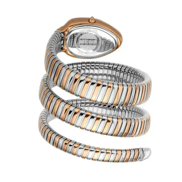 Effortlessly combining style and functionality, this women analog watch from Just Cavalli will be a perfect pick. The silver oval dial is protected by a mineral glass. The stainless steel strap comes in a silver & rose gold hue that further elevates the look of the timekeeper. Besides, it is completed with a bangle clasp to ensure a secure fit on the wrist.