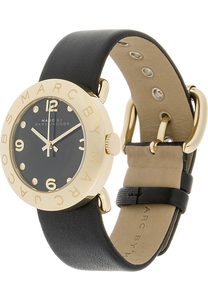 Marc Jacobs Amy Black Dial Black Leather Strap Watch for Women - MBM1154